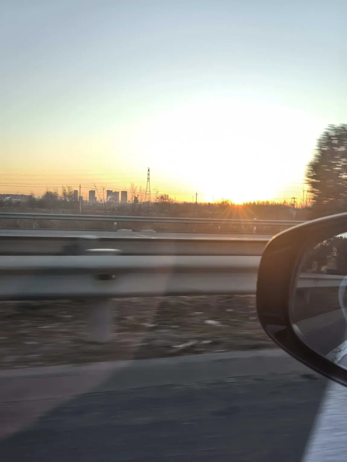 有时是清晨出发,迎着朝阳,看日出把天际线染成温柔的橘色,后视镜里是追着我跑的光;