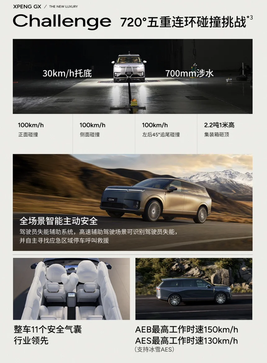 ✅ 安全拉到天花板:航空级六重安全冗余,线控转向、制动、供电全都是双备份,还有11个安全气囊,连第三排都照顾到了。720°连环碰撞挑战、150km/h的AEB,开着它带全家出门,安全感直接拉满。
