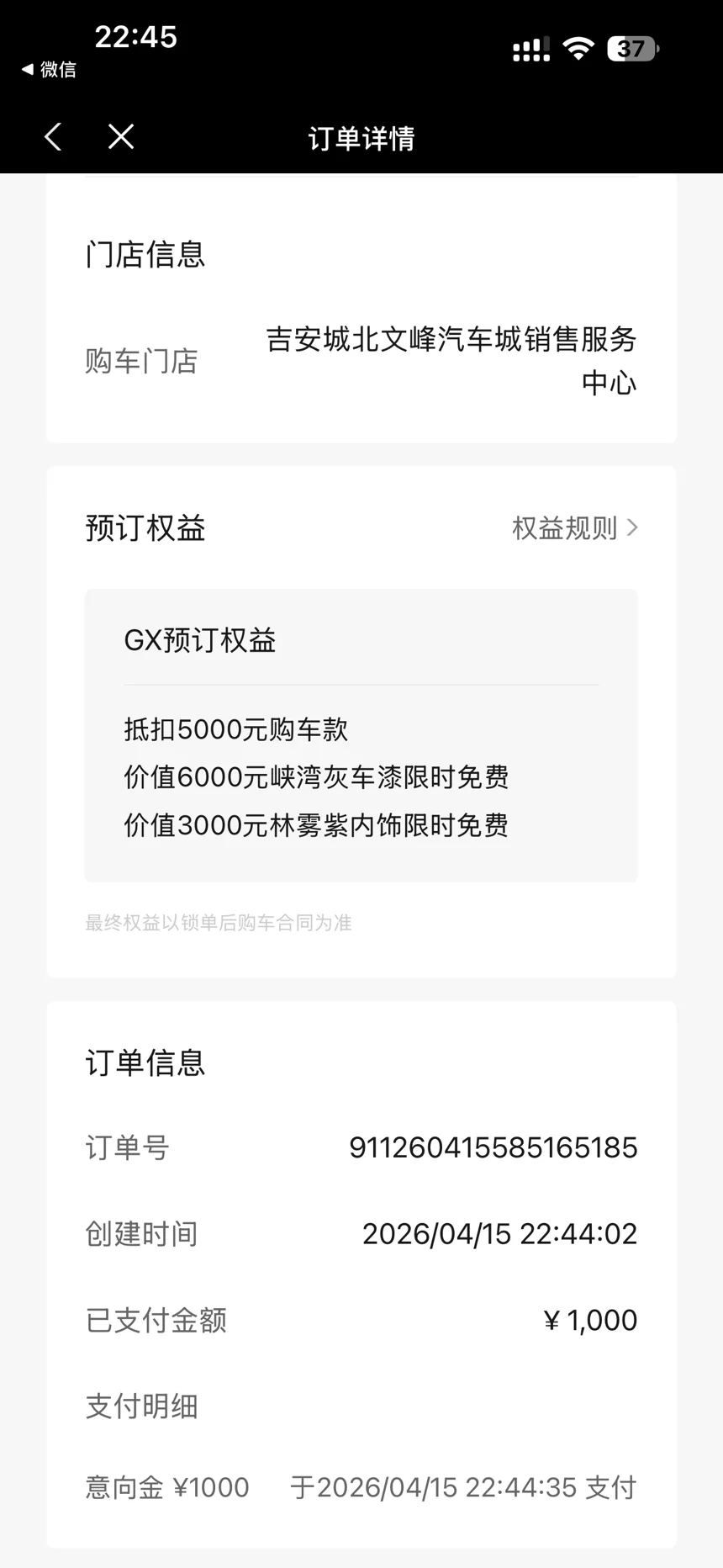 我订的峡湾灰+林雾紫内饰,限时权益直接省了9000块,1000意向金还能抵5000车款,这波不亏。有同样家庭用车需求的朋友,真的可以冲!