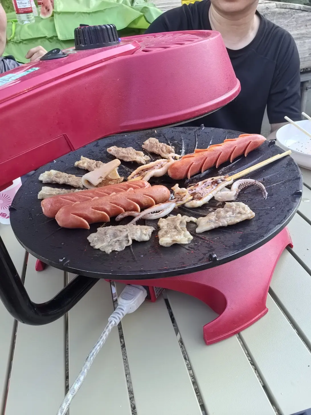 ✅ 必带:天幕(防晒又防雨)、折叠桌椅、保温箱、食材、水