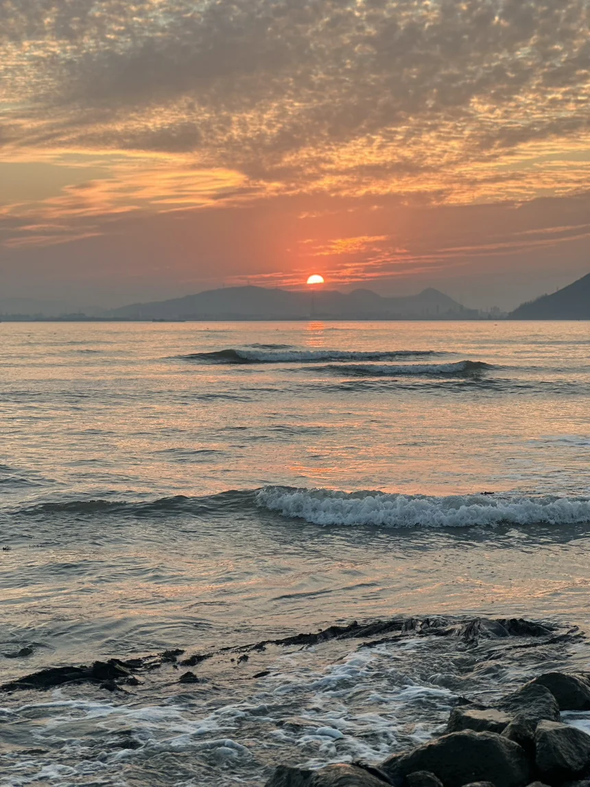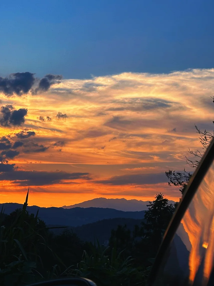 奔赴山野,撞见烧红半边天的落日🌄,看层云翻涌着金色浪涛,连吹过的风都格外温柔治愈。