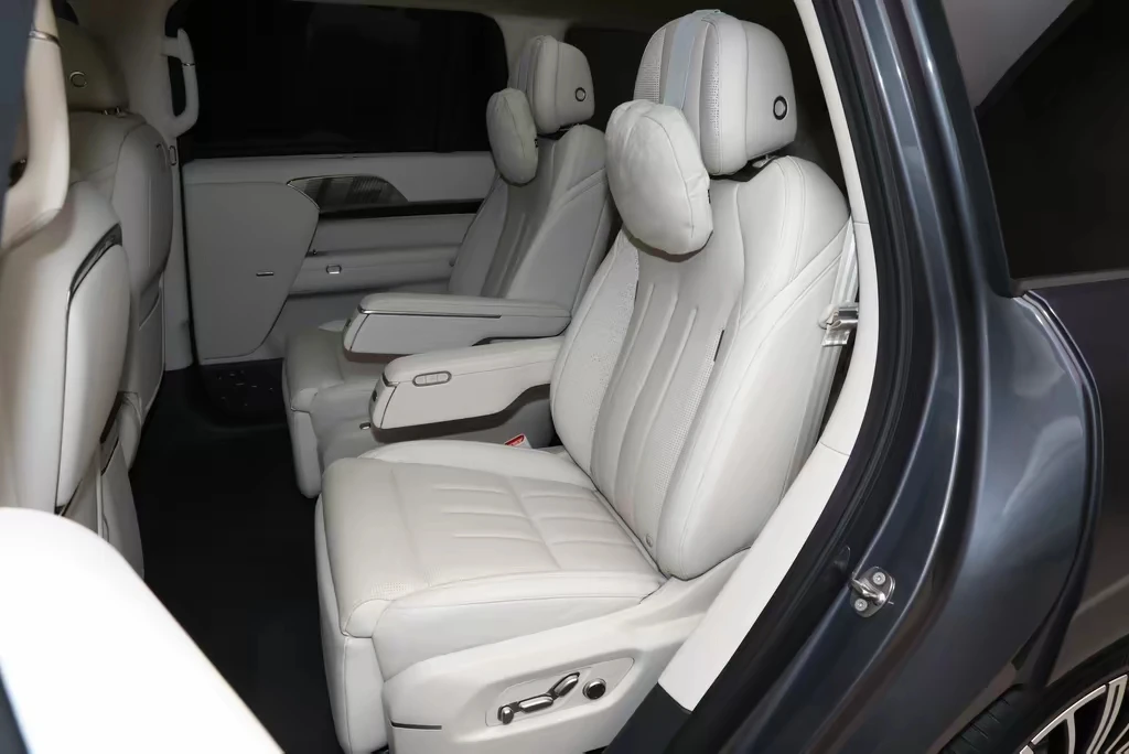 车身操控和安全也没马虎,全尺寸车型却很灵活,搭配空气悬架、智能四驱,开起来完全不笨重,不管是转弯还是刹车,表现都很出色。再加上高强度车身、全域安全冗余,被动主动安全都做到了位。舒适配置也很齐全,零重力座椅、车载冰箱、可调光隐私玻璃,三排座椅布局也很实用,家用、商务都能兼顾。