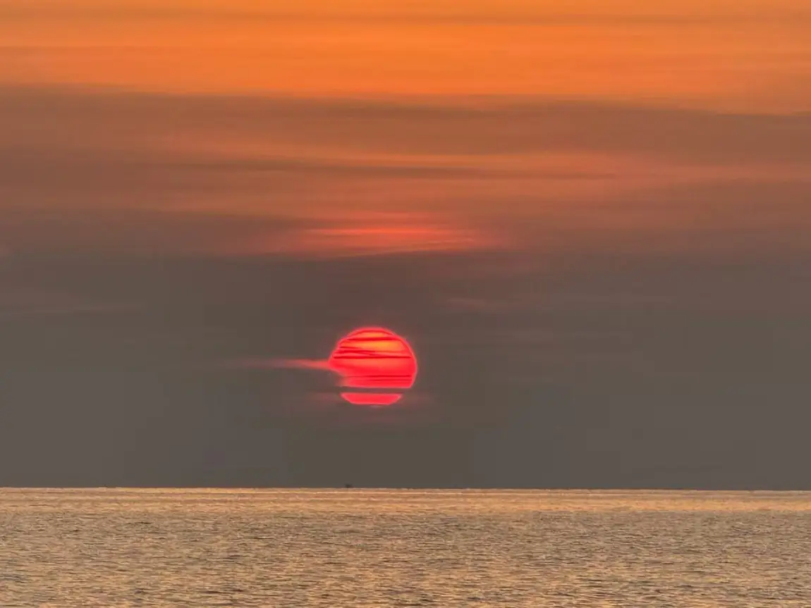还有海边的落日,把整片天空和大海都晕成了温柔的橘红,落日熔金,氛围感直接拉满🌅