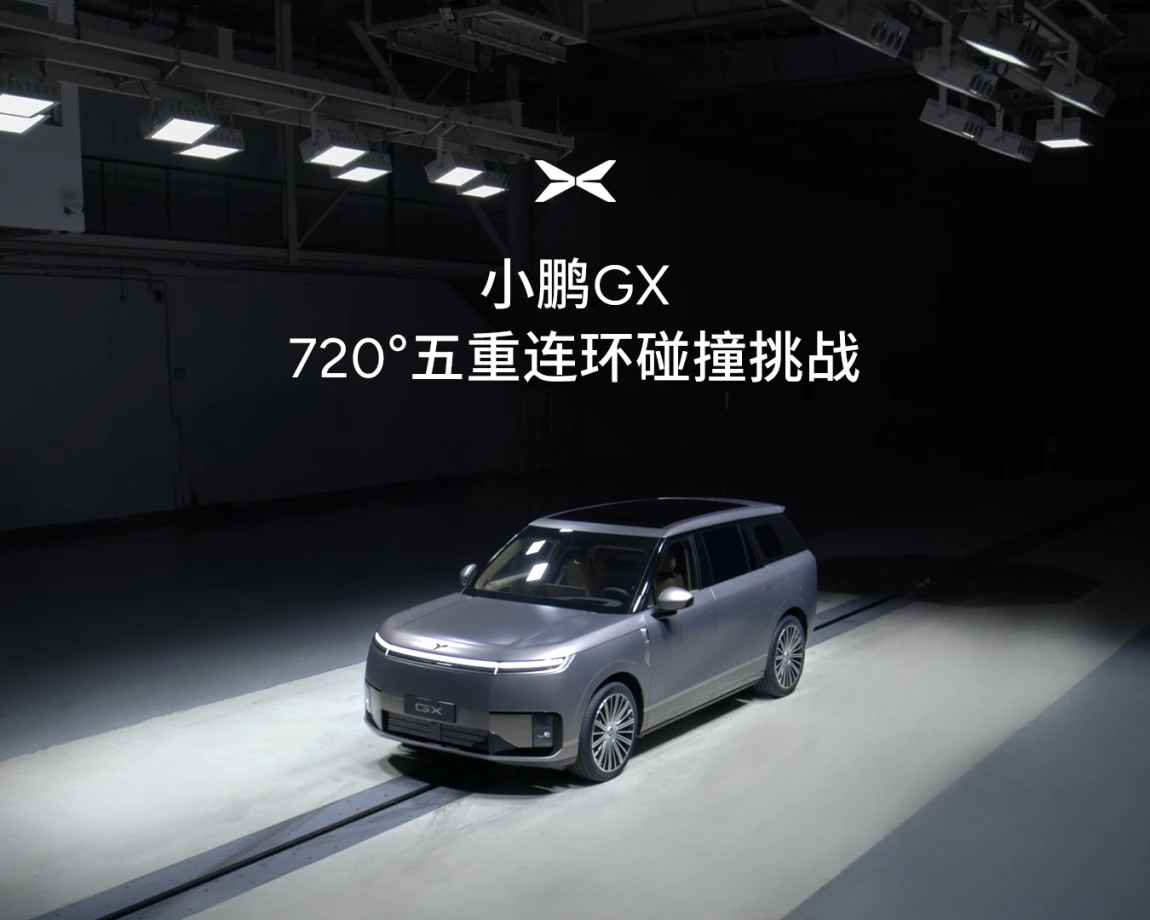 小鹏GX联合中汽中心,成功挑战720°五重连环碰撞测试!