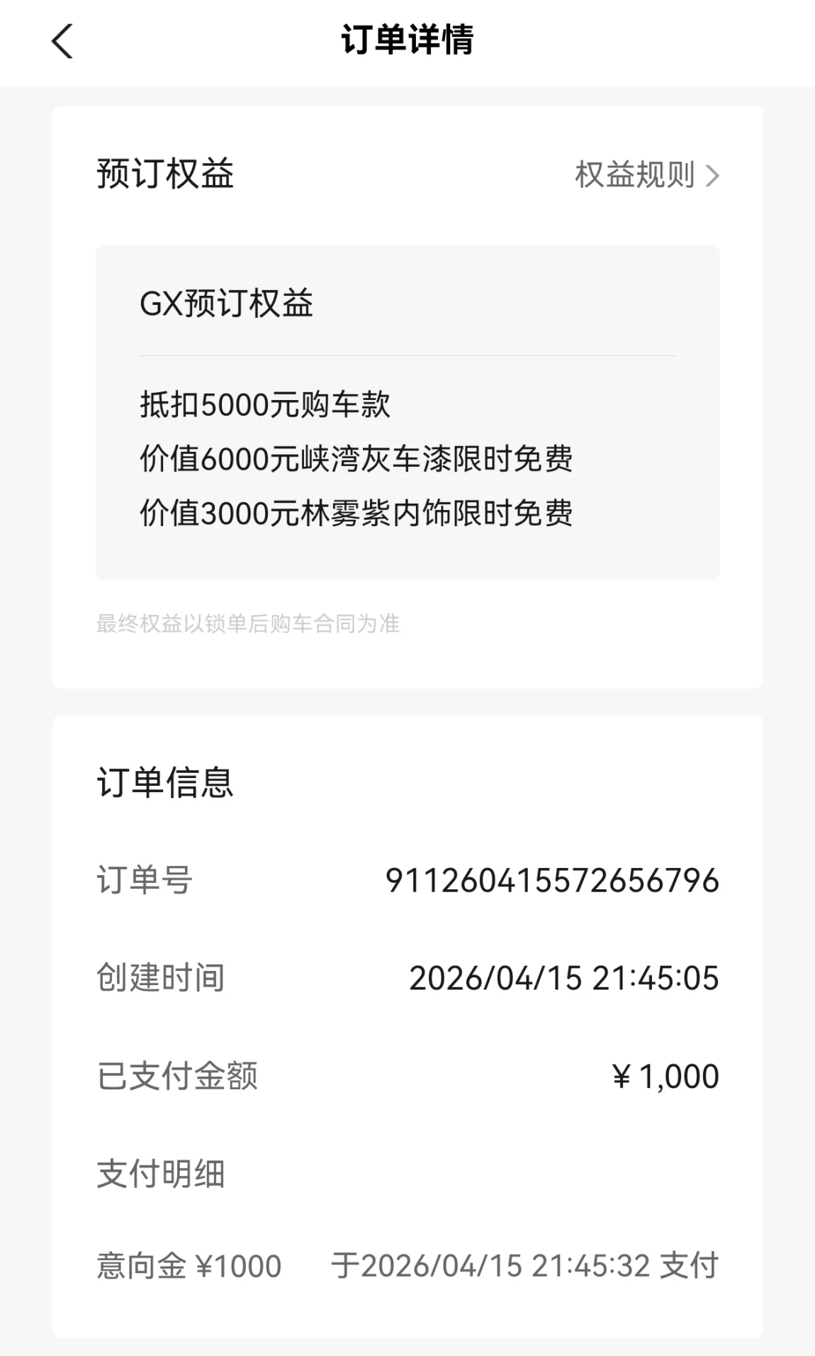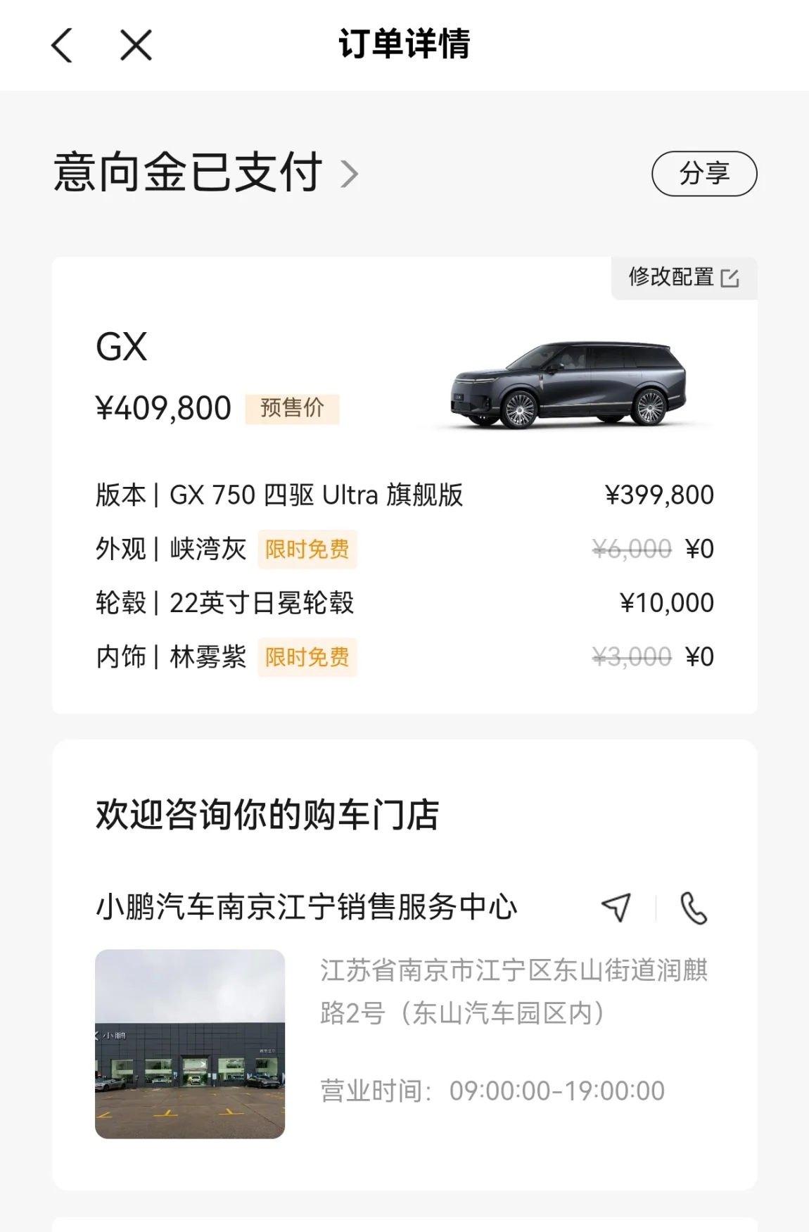 昨天看完小鹏GX发布会,感觉这次的小鹏GX真的太惊艳啦,迫不及待就交了意向金啦,先锁定预售权益。