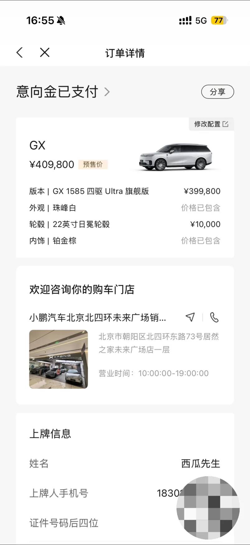 #小鹏GX# 盼了好久,终于等到小鹏GX开启预售,第一时间就下手订车了,真的太开心!早就盯上这款AI新豪华大六座SUV,看完配置直接果断下单,完全没犹豫!