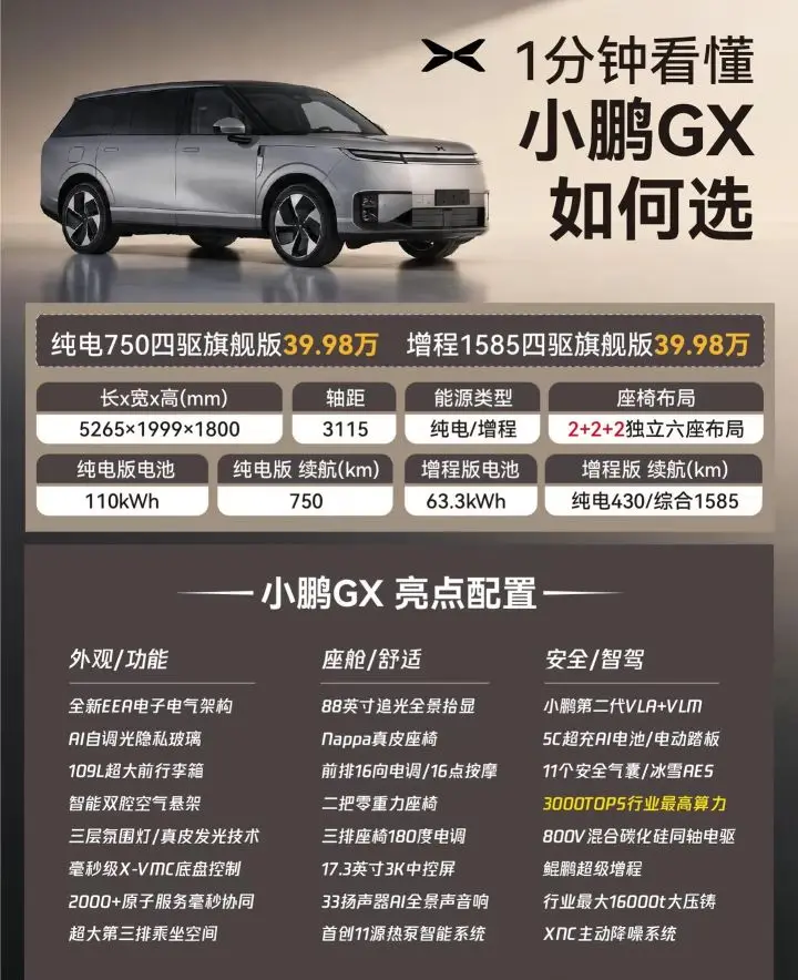 从G6到GX的升级,是基于对家庭出行需求与安全标准的更高追求。作为老车主,深刻信赖小鹏的技术迭代,而全新GX以“AI新豪华大六座旗舰SUV”定位,精准契合了家庭结构变化后的空间与舒适需求。