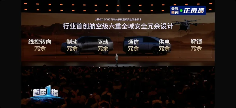 任何一个系统坏了,车都能安全停下,和飞行汽车同源技术。