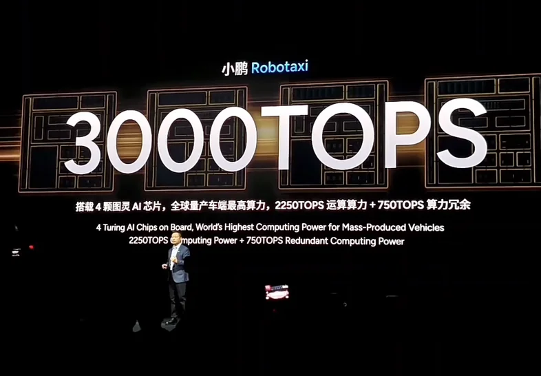 • 4颗自研图灵芯片,3000TOPS 有效算力(目前量产车天花板)