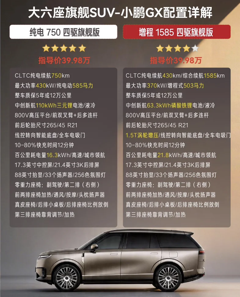 39.98万预售,纯电/增程同价,这个配置在40–50万级基本没有对手,属于“用40万给100万体验”的旗舰。@社区活动小姐姐 @鹏友大管家