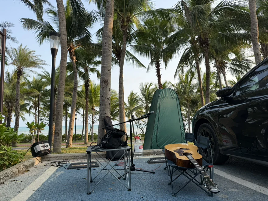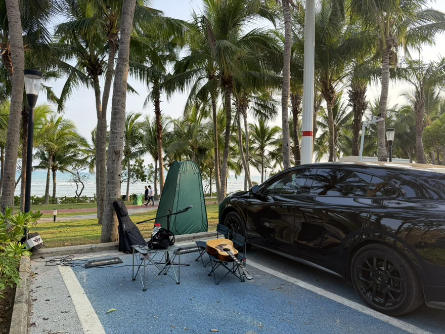 随时随地,停好车,扎好帐篷,冲个凉水澡,弹琴唱歌,生活美滋滋。