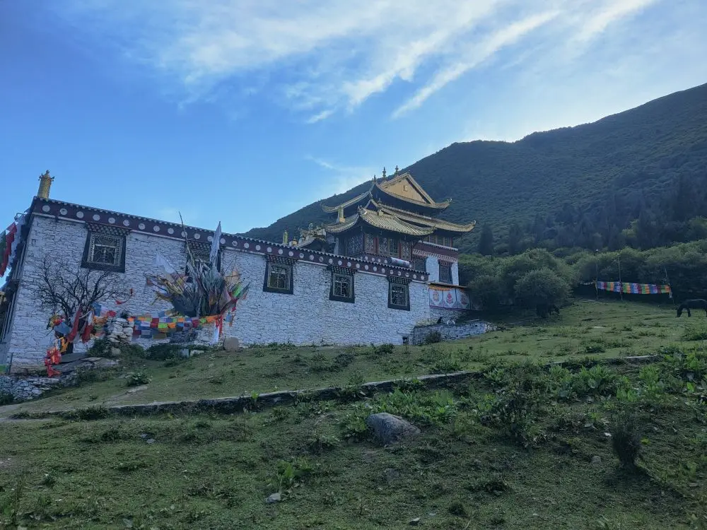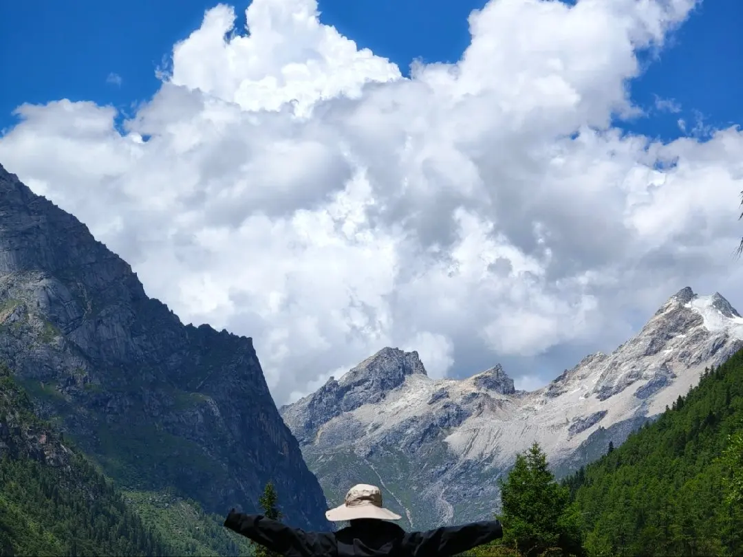 选择了徒步长坪沟,沿着栈道慢慢往里走。两边是原始森林,头顶是雪山尖,空气冷冽又清新。走到枯树滩,看干枯的沙棘树站在浅滩里,远处雪峰倒映在水面——那种安静,能让人把城市里的烦心事全忘掉。累了就坐在路边的石头上吃自热米饭,看着雪山吃饭,比什么餐厅都香。