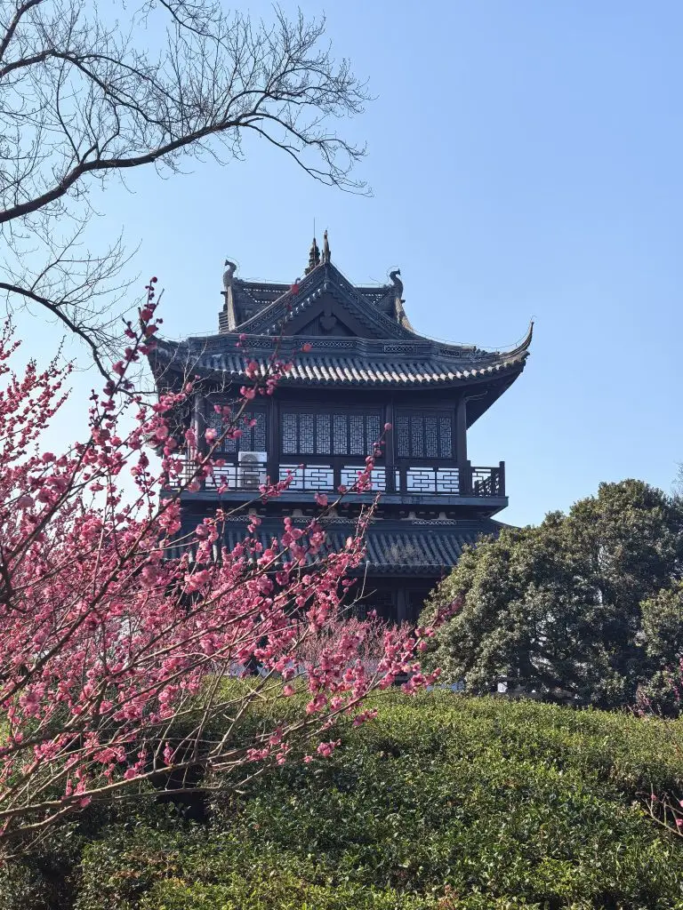 登顶的瞬间:穿过最后一段石阶,视野豁然开朗。剑门是虞山的制高点之一,站在这里,尚湖全景尽收眼底——湖水如镜,阡陌纵横,远处的常熟城区在薄雾中若隐若现。这一刻,刚才爬山时的气喘吁吁,都化作了“一览众山小”的畅快。
