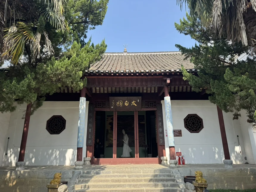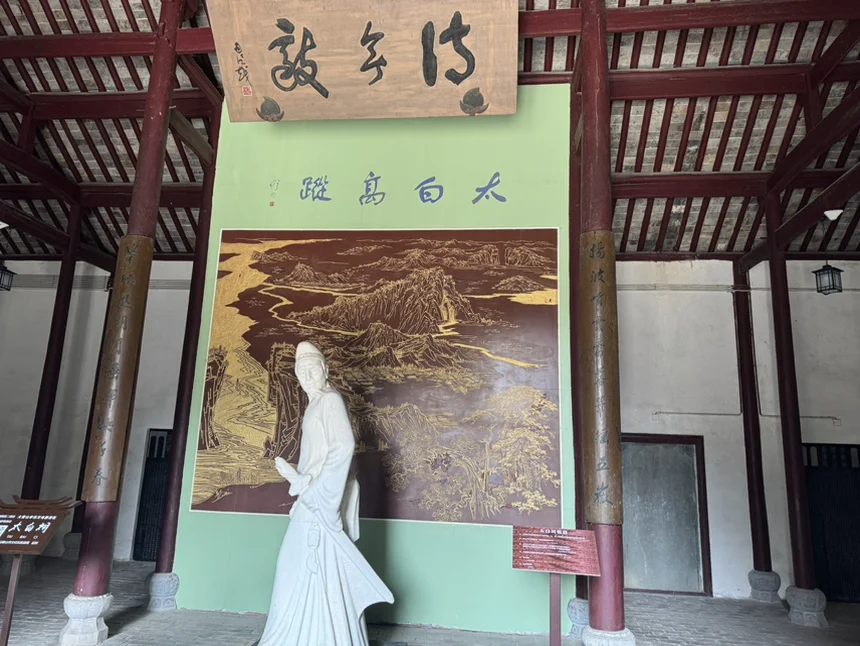走进太白祠,“太白高踪”四个大字苍劲有力。站在李白雕像前,仿佛能看到他仗剑走天涯的豪迈,那些从小背到大的诗句,此刻都有了具象的模样。太白祠前最后一张打卡照,结束这场治愈的春日之旅。
