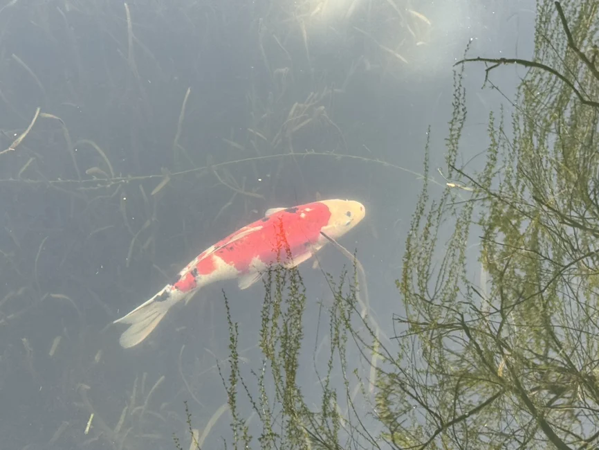 在池边偶遇了超美的红白锦鲤,波光粼粼的水面下,它们自在游弋。愿看到这条锦鲤的鹏友们,都能好运连连,万事顺遂~