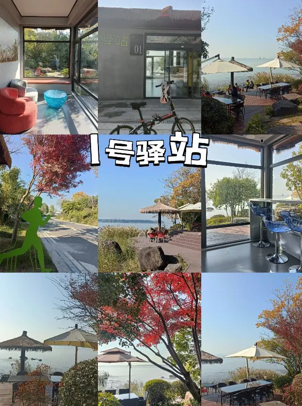 中途必须打卡艾美与东太湖酒店交界的1号驿站!🏕️室内有沙发吧台和淋浴间,室外临湖花园错落排布着赏景位,自带网红咖啡馆的氛围感。带着零食茶具坐下来,吹着湖光山色发发呆,简直是骑行途中最治愈的停歇☕️