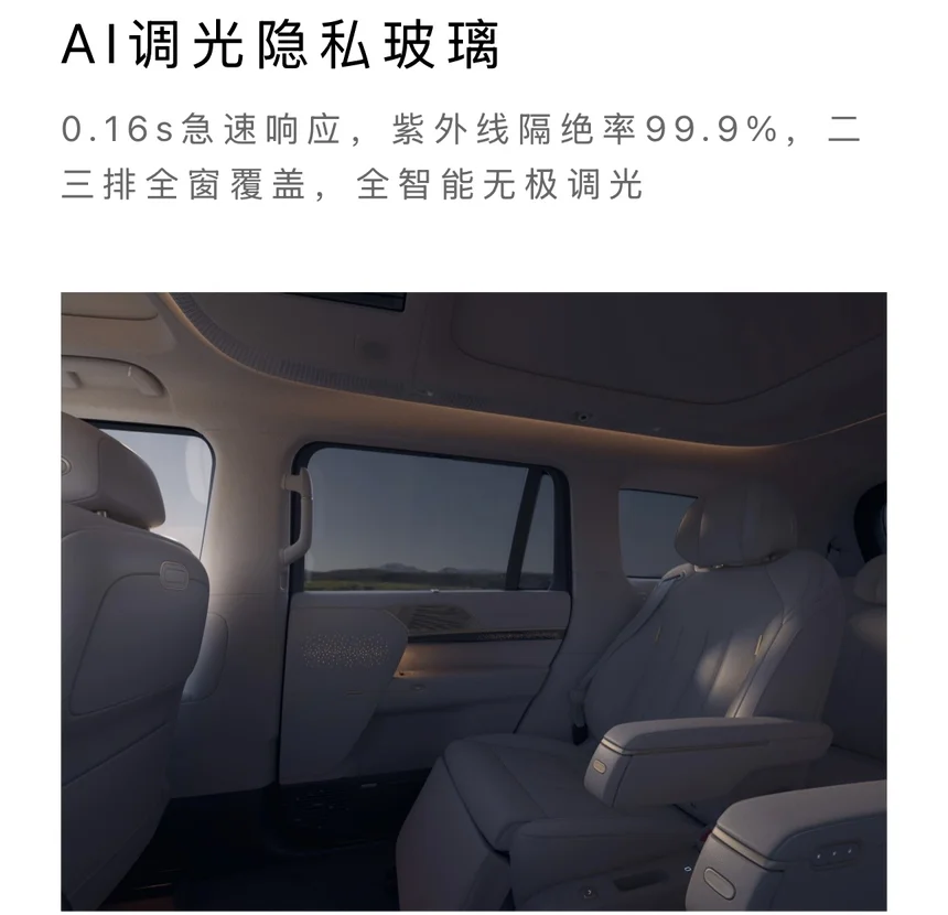 全球首创,小鹏GX联合福耀打造的全球首个AI调光隐私玻璃,0.16秒极速响应,比眨眼还快。