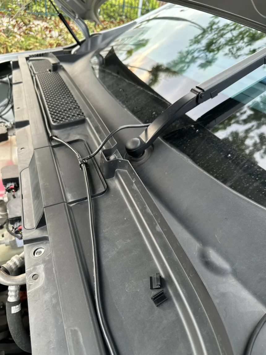 网上查了大部份车型都有这个情况,所以湿臂雨刮登场了