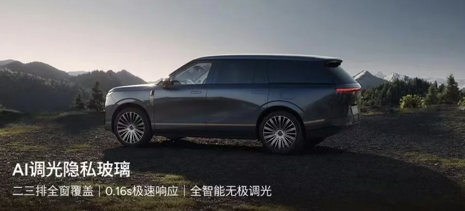 而真正把豪华和智能玩出新高度的,是GX上那些懂用户、有温度的智能配置。首先是和福耀联合开发的AI调光隐私玻璃,它根本不是简单的一键变色,而是一块会思考、能预判的智能车窗。它能实现0.16秒极速通透到隐私的切换,一键就能打造专属私密空间;更厉害的是它的AI自适应能力,开车时左侧有太阳直射,左侧玻璃就会自动调光遮挡,车内摄像头识别到后排有小朋友被太阳晒到,也会自动对应区域变光遮阳,隔绝99.9%的紫外线,既保护了隐私,又给了家人最贴心的呵护。