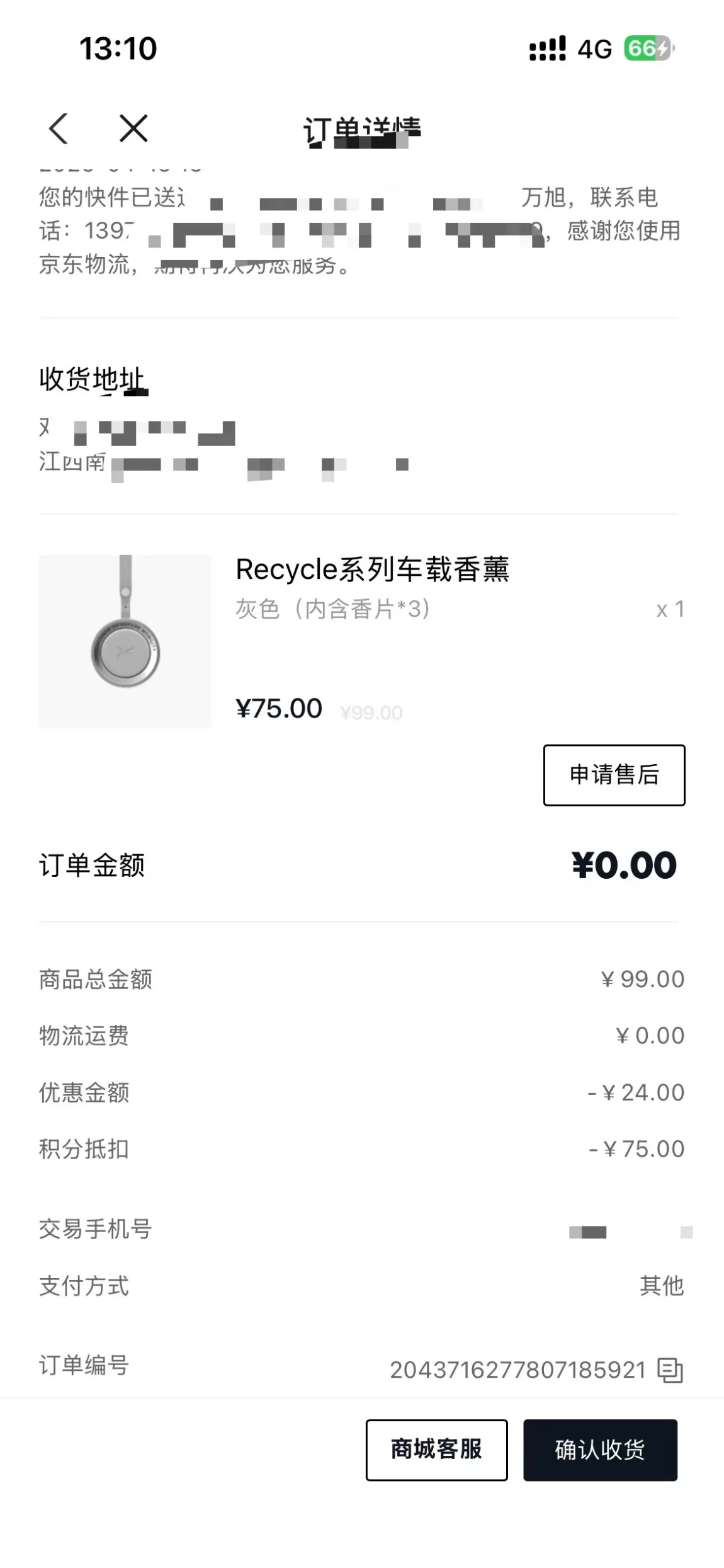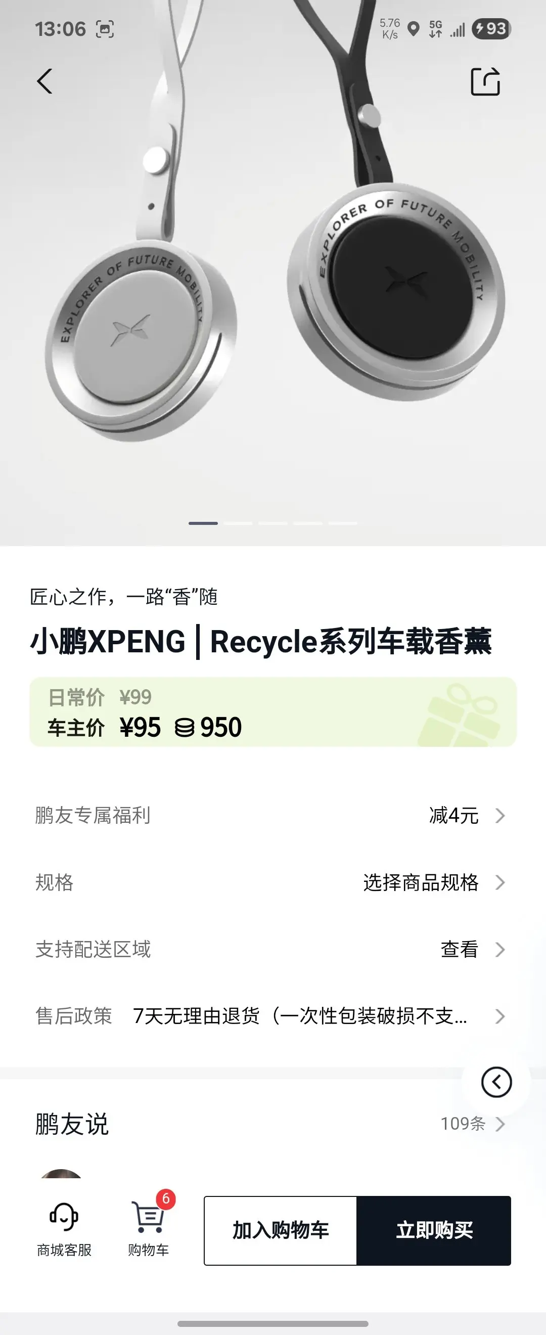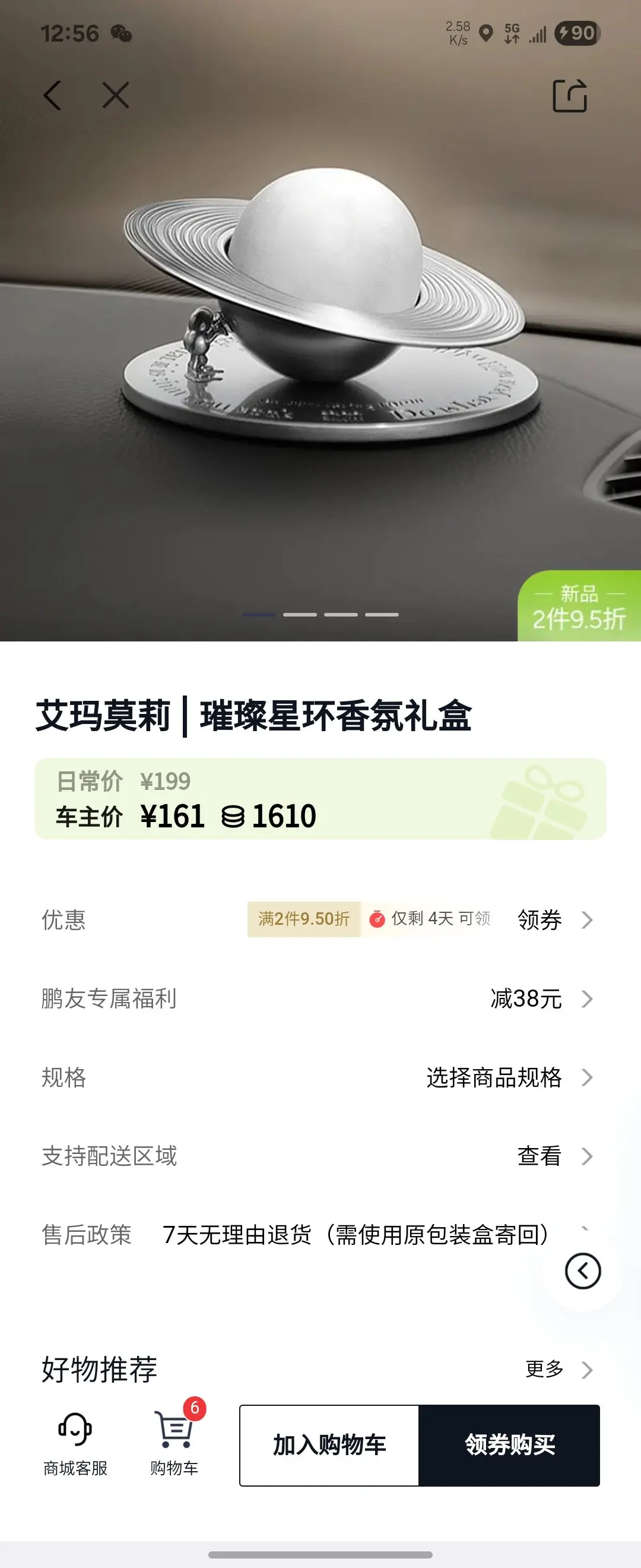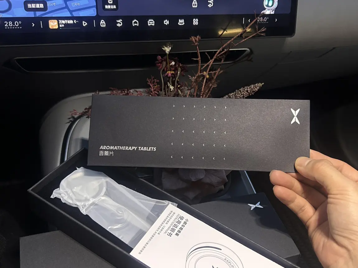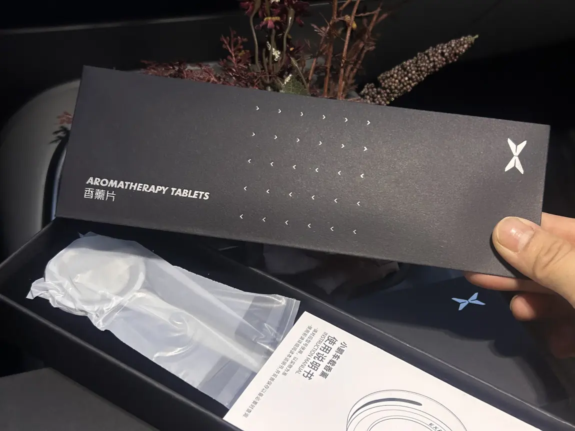 说这个香薰商城是一直有卖的,纳帕真皮制作,听车友说非常有质感,而且补充装也可以通过小鹏商城进行购买,积分就行,不用花钱,顿时我也有点心动,然后还没说完呢,他说他买有签到获得的优惠券,减20,然后就直接帮我下单了。(他也是小鹏车主,我们家两台小鹏😆)