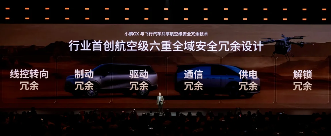 2️⃣ 顶级安全:16000T一体压铸车身、11个安全气囊、150km/h的AEB刹停和130km/h的AES避让速度,还首次提出跟自家飞行车同源的「航空级六重全域安全冗余」概念——核心系统双重备份,单一故障不影响行驶。尤其是驾驶员失能状态下的自主泊车,真正的科技以人为本!
