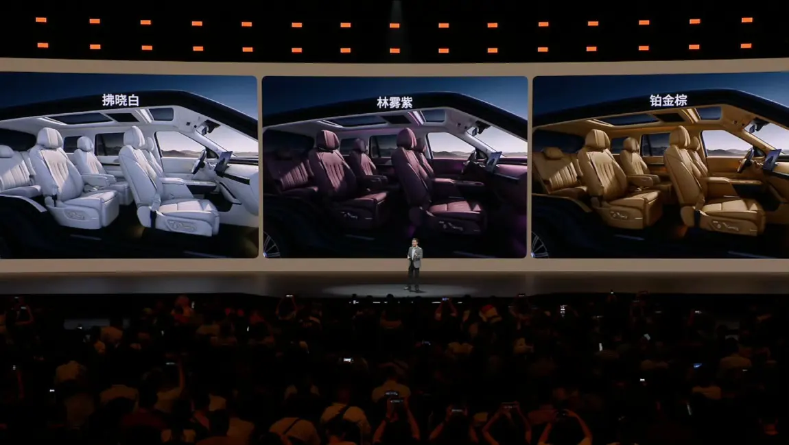 5️⃣ 黑科技亮点:百万像素智能大灯、 AI调光隐私玻璃、带杀菌功能的风冷冰箱、森林风AI空调、21.4英寸后排护眼大屏等一系列配置,也让旗舰产品的卷到了新高度。