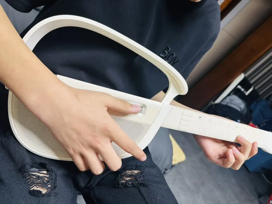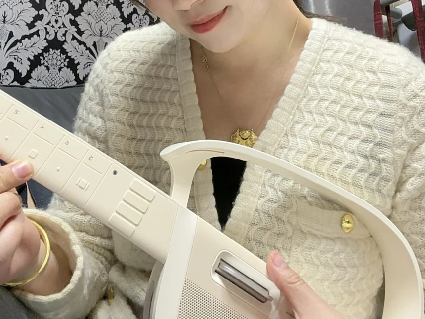 奶白色的机身简约又干净,拿在手里质感超棒,线条圆润又高级,摆在桌面都像一件氛围感满满的装饰,完全不是传统乐器那种笨重的感觉。拆开包装的那一刻,就忍不住拍了好多张照片,说这颜值太戳审美了!