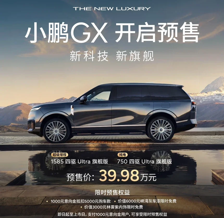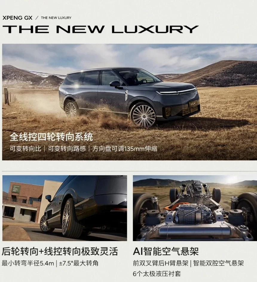 小鹏GX所诠释的“THE NEW LUXURY”,是科技普惠下的全员尊享,是冗余设计带来的极致安心,是智慧底盘赋予的从容驾驭,更是灵活空间承载的无限可能。