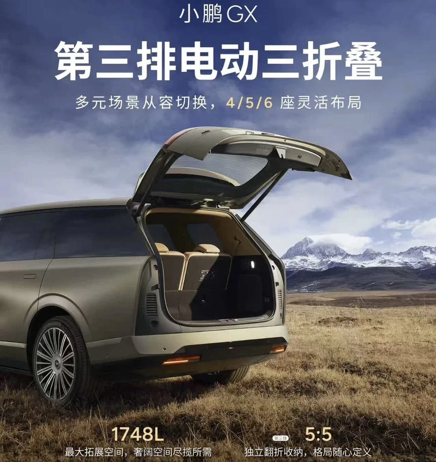 对于大家庭或热爱生活的用户而言,空间灵活性至关重要。小鹏GX的第三排电动三折叠功能,堪称“空间魔术”。