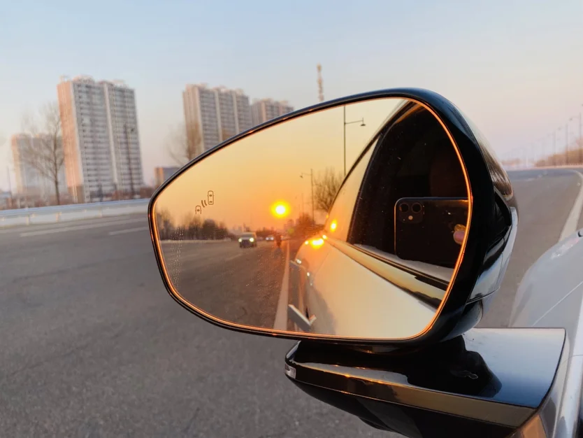 等红灯的间隙,夕阳撞进后视镜,停下车拍下落日的余晖,满满的爱溢出来窗口;