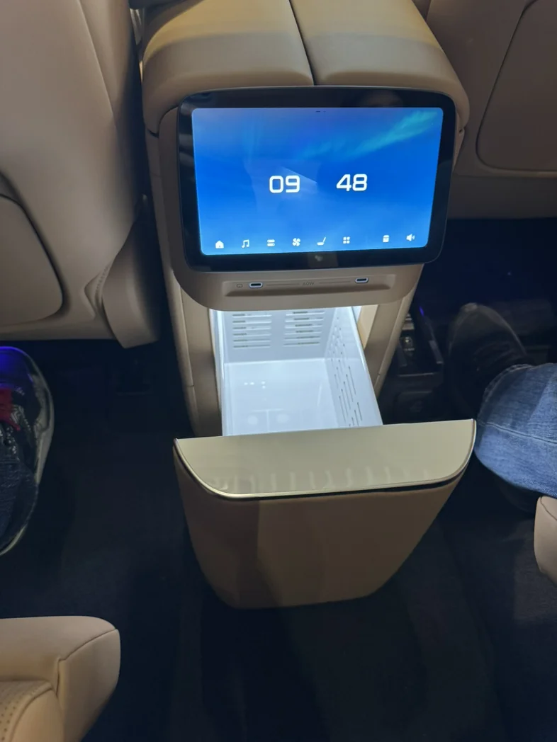 顶部的环绕氛围灯,从最后排看,非常好看,有点极简科技风的感觉,就像飞机头等舱式环抱座舱一样。