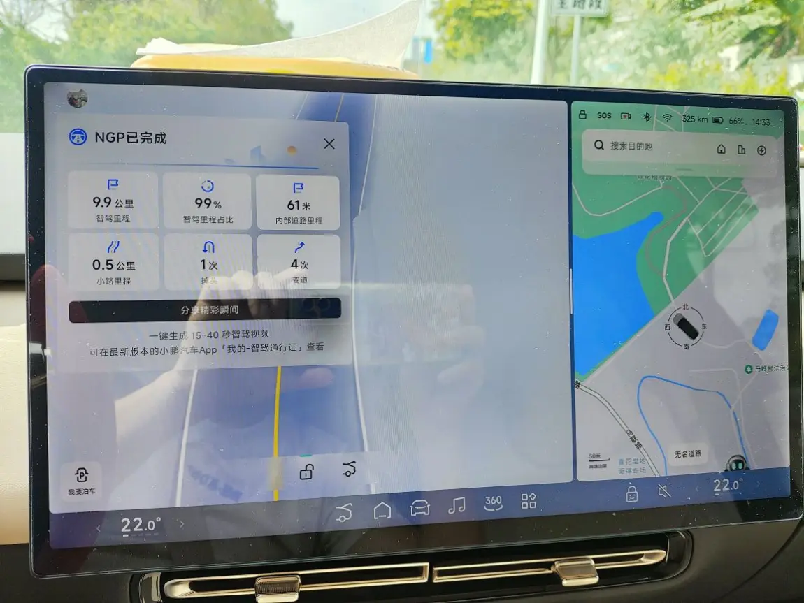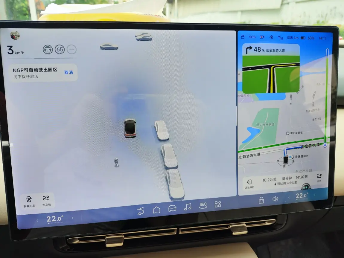 还记得刚驶出园区的那一刻,车机屏幕上清晰显示着“NGP可自动驶出园区”。轻拨拨杆,P7+就像一位老司机一样,精准识别路况,丝滑地汇入主路。