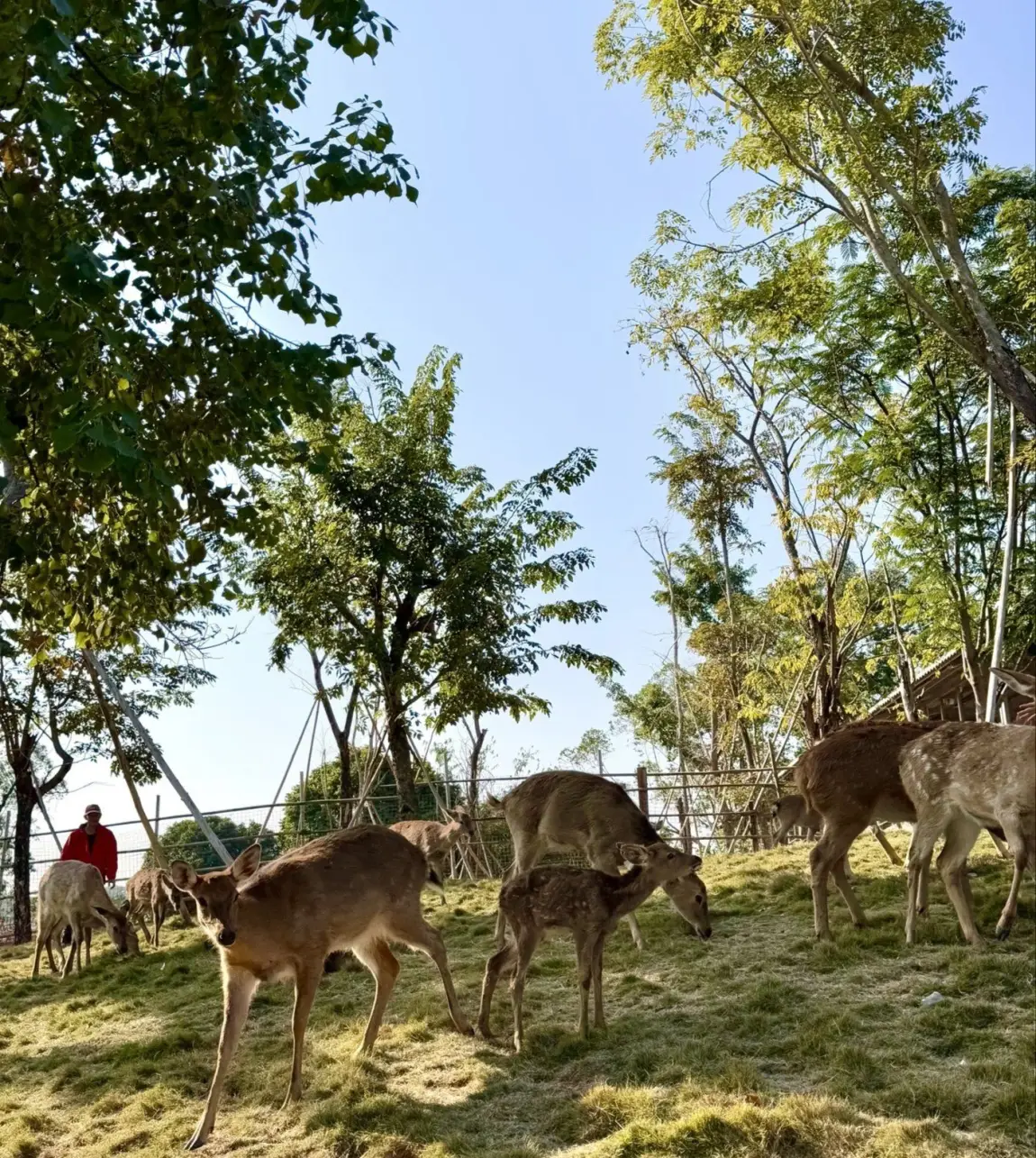 🎉我的游玩路线(舒适路线):租赁电瓶车→扎营→捞鱼(戏水长流)→16:00后喂孔雀(孔雀翠屏)→撸鹿(鹿鸣半岛)→小火车→喂鹦鹉(电瓶车过去)→无动力乐园→收拾归程