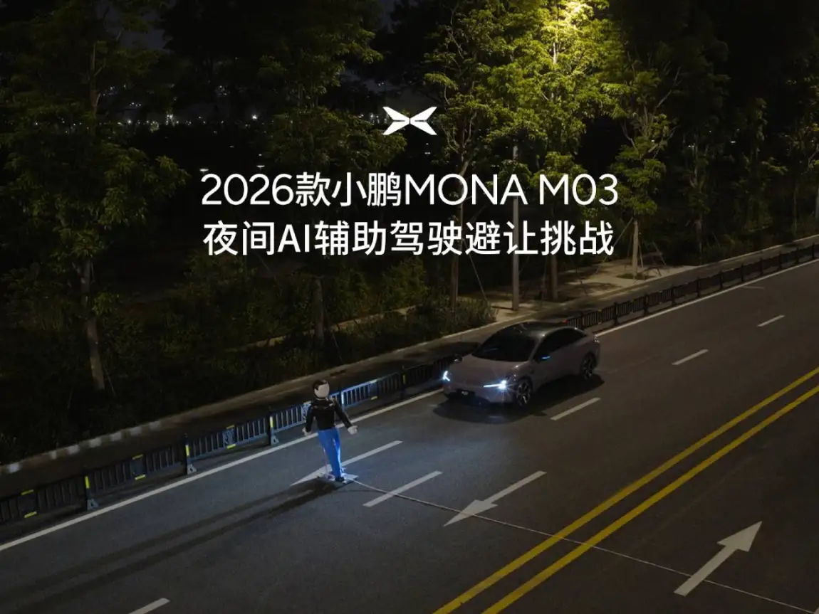 2026款小鹏MONA M03夜间道路AI辅助驾驶避让挑战,