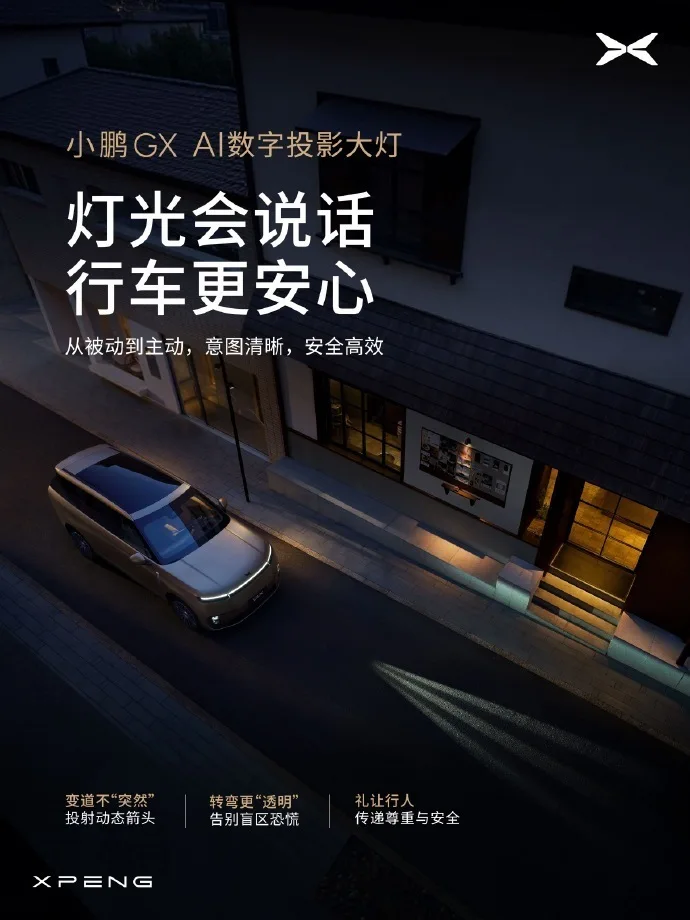 对奶爸来说,行车安全永远是不可退让的底线,而小鹏GX的AI数字投影大灯,把家庭出行的安全守护做到了极致。