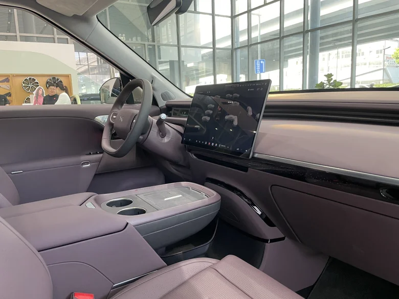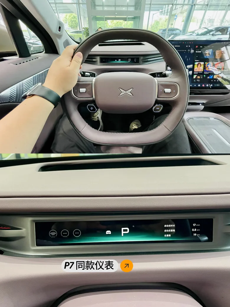 坐进座舱,能一眼看到熟悉的小鹏家族设计语言——和P7同款的极简风格扑面而来。仪表盘沿用了P7的同款方案,直接“拿来就用”,但放在GX这种旗舰SUV里,确实显得略为简单,少了点专属的豪华感。方向盘同样是带双行星按钮的设计,上手的握感和操作逻辑都很顺手,盲操毫无压力。音响给了我不小的惊喜,对比P7来说,GX的音质明显更厚重饱满,声场也更有包围感,在展厅里简单试听,就能感受到明显的提升。