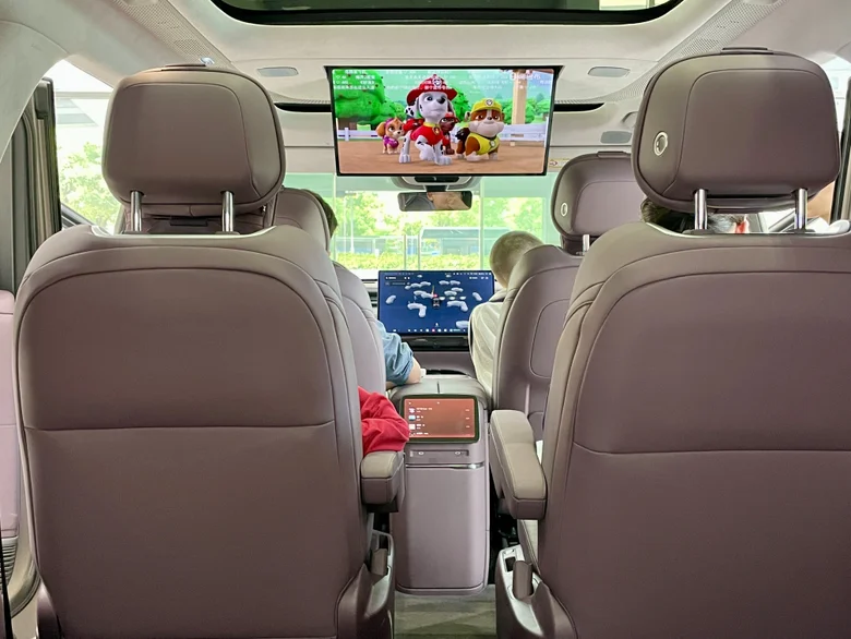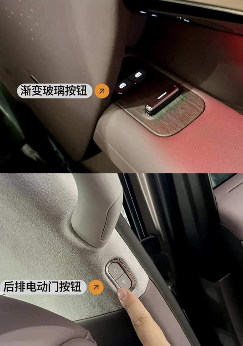 这台车最戳我的亮点,无疑是全场景的电动化配置:全车电动门、电动变色车窗、可电动折叠的三排座椅,就连头枕都是电动调节的!更贴心的是,几乎所有车门都能通过语音控制开关,全程不用动手,仪式感直接拉满。唯一的小遗憾是前备箱,依然只能电动开启,无法电动关闭,还得手动操作。