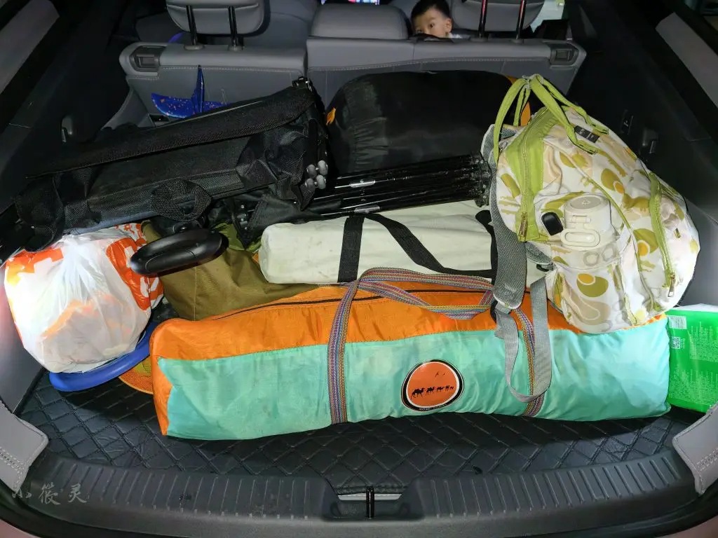 此刻,必须狠狠夸一夸我的新搭档——小鹏P7+。面对满满当当的露营装备,它的后备箱展现出了惊人的包容度,所有行囊从容入列,毫无压力。