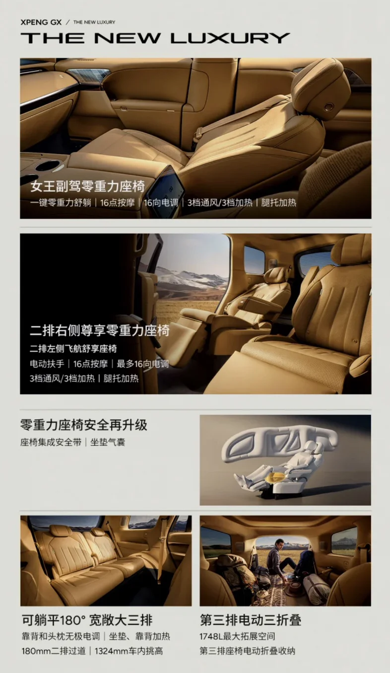 • 零重力座椅+车载冰箱+21.4英寸大屏+33扬声器,长途出行舒适又享受