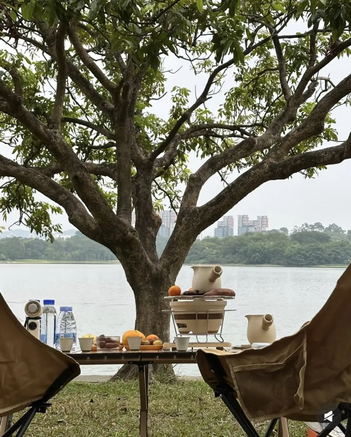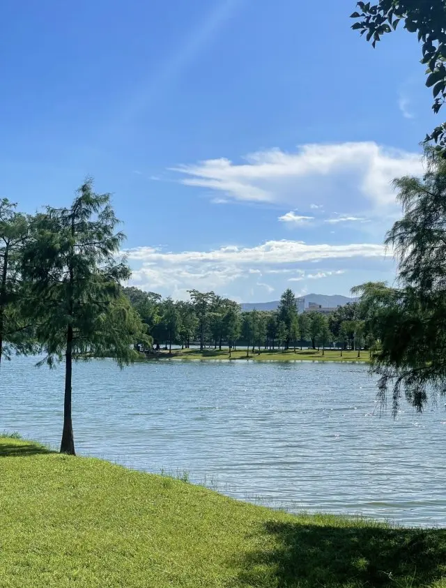 从广州出发,导航直达松湖小岛露营地,一个半小时就到达。无需门票、不用预约,车辆还能直接开到湖边草地,省去了搬运装备的烦恼,对自驾露营党来说非常友好。草坪、湖水、微风,家人,组合在一起简直太美好了。