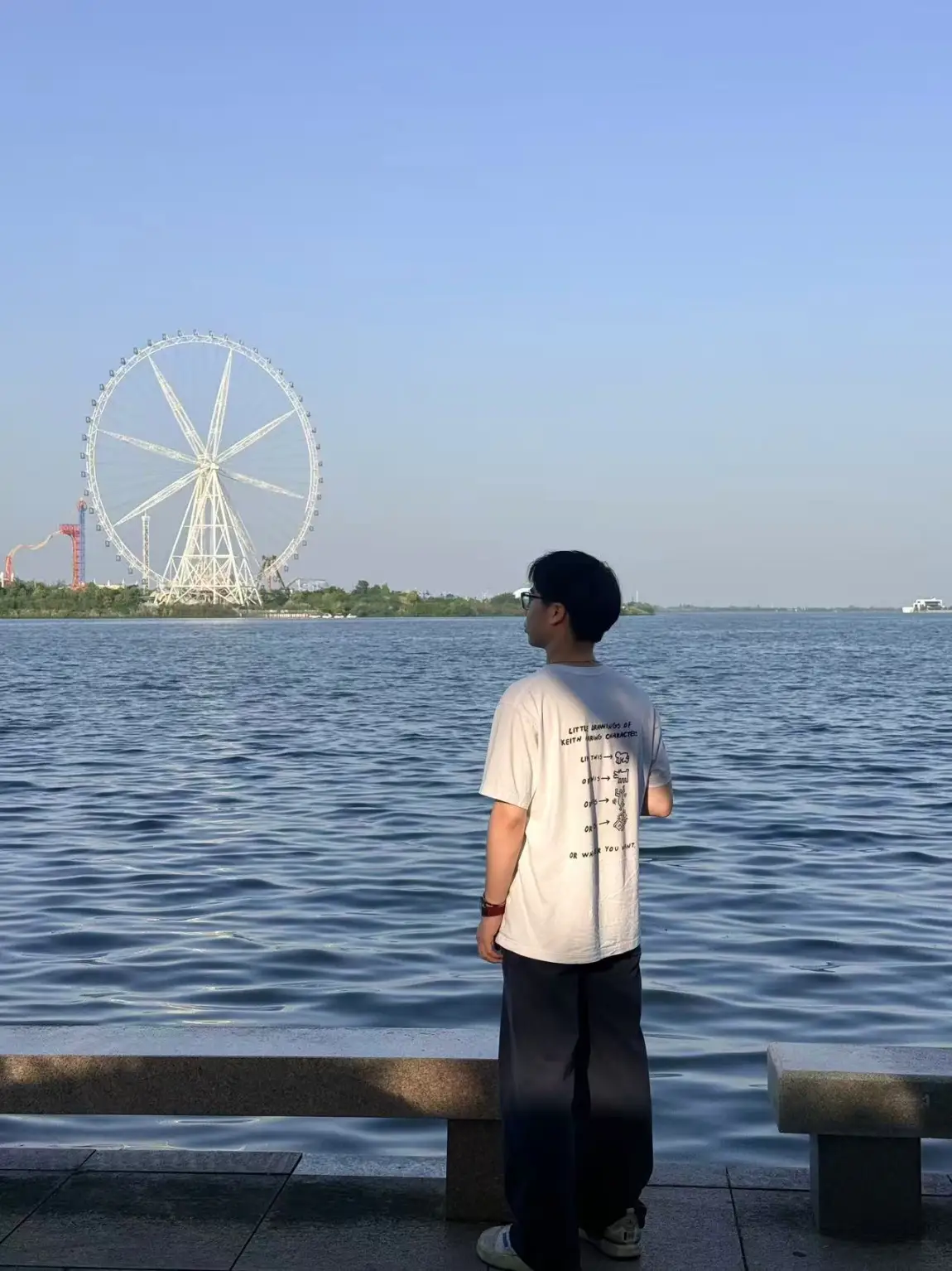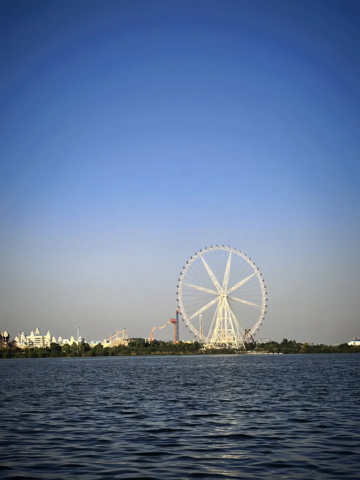 第一站是到达湖中乐园摩天轮🎡把自行车停在路边,然后去湖岸边可以和摩天轮来一个合影!可以感受一下湖边的清澈,一时分不清这是湖还是大海!