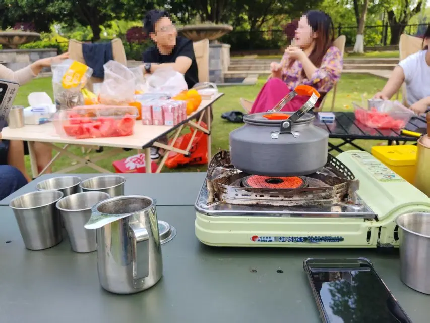 在溪边打开对外放电,热水壶咕嘟作响时,咖啡香混着青草气漫开。邻居帐篷的大叔羡慕地看我们用电磁炉煎牛排,而我们的P7+在阳光下静立,用12.3kWh/100km的能耗,为这场春宴提供着温柔的底气。