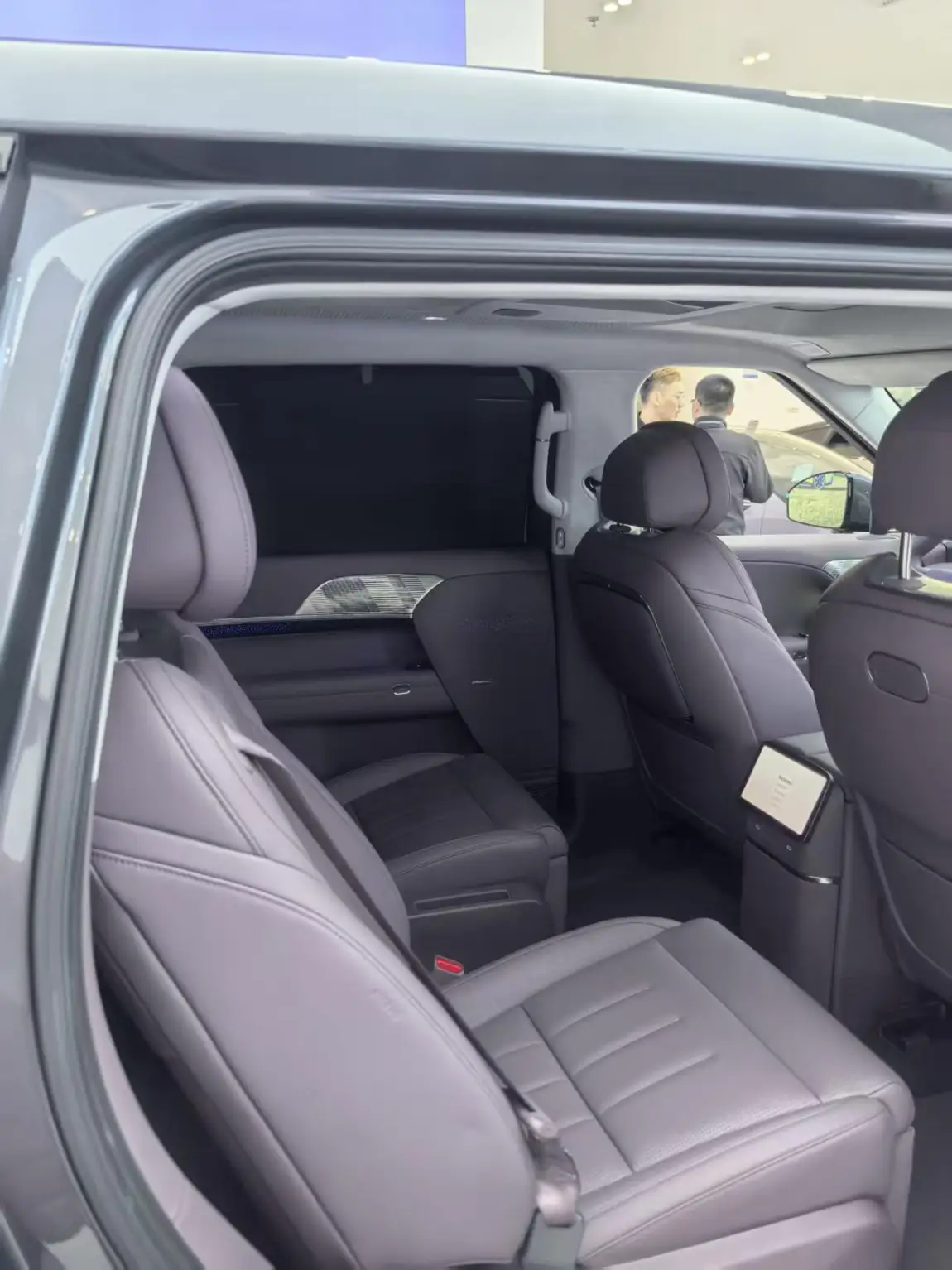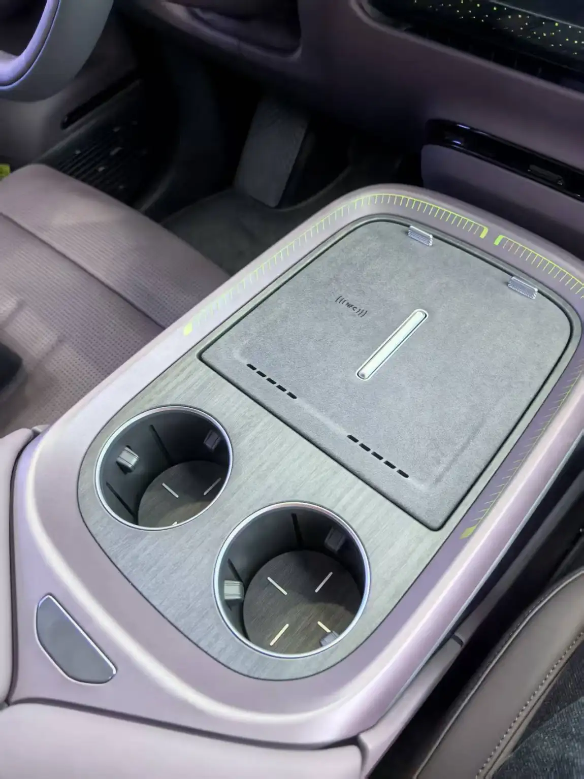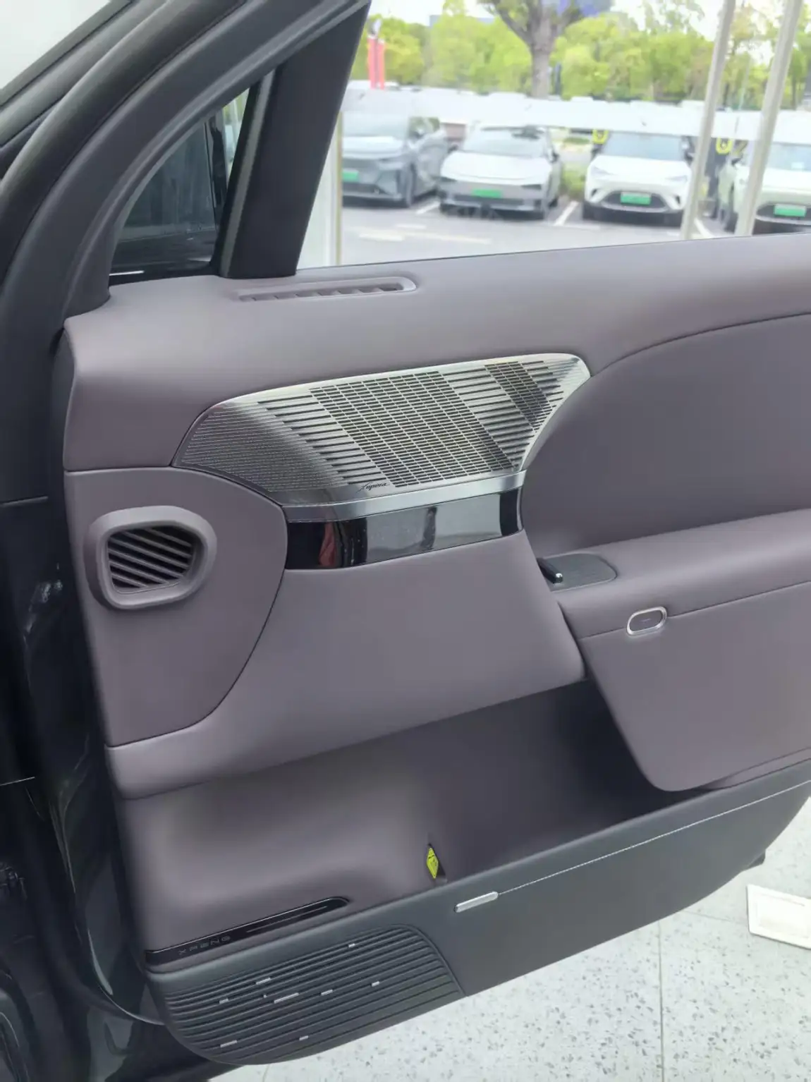 首先是外观和内饰的设计,真的让人眼前一亮。我选择的峡湾灰车漆搭配林雾紫内饰,呈现出一种独特的高级质感。峡湾灰在不同光线下会呈现出丰富的层次感,沉稳而不失优雅;林雾紫内饰则温润柔和,大面积的皮质包裹和精致的缝线工艺,营造出温馨又豪华的座舱氛围。车头的24K太空陶瓷金标是点睛之笔,采用航天级氧化锆陶瓷基底和24K真金PVD真空镀金工艺,不仅光泽度极佳,而且极其耐用,真正做到了历久弥新 。