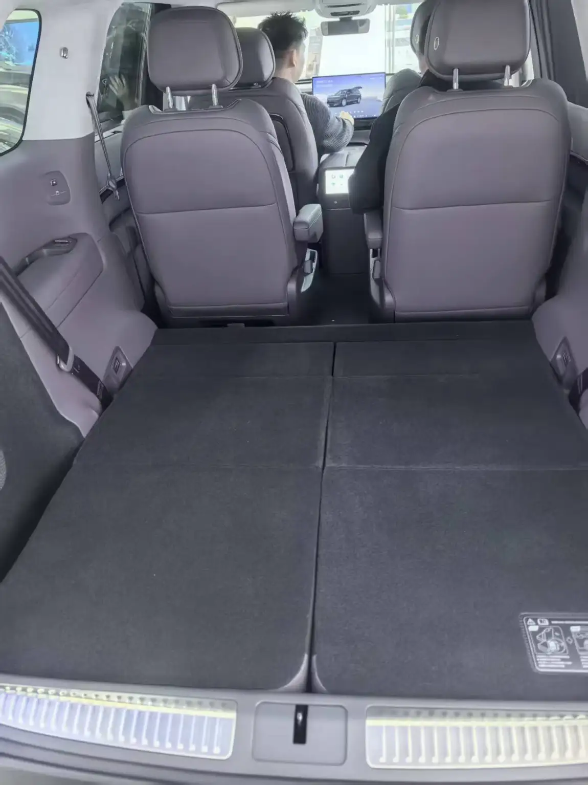 空间方面,小鹏GX的表现堪称完美。5265mm的车长和3115mm的轴距,带来了宽敞的内部空间。2+2+2的六座布局非常灵活,平时家里只有三四口人的时候,完全可以把第三排放倒,当作大四座来使用,二排乘客可以享受到堪比头等舱的乘坐体验。即使坐满六个人,每个人也都能拥有舒适的乘坐空间,不会有任何局促感。第三排还支持0-180°电动调节和完全放平,后备箱空间可以从673L拓展到1748L,无论是家庭出游还是搬运大件物品都绰绰有余 。