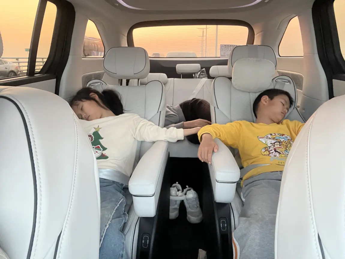 现在开X9超级增程大七座出行,驾驶和乘坐感受比之前的SUV提升太多啦~这次去中山走深中通道,几乎全程智驾,我就监督NGP就行,偶尔干预下。几个娃坐的非常舒适,看会电视,玩会游戏,旅途轻松愉快。返程途中三个娃就看了会《猫和老鼠》,直接躺平睡着了。