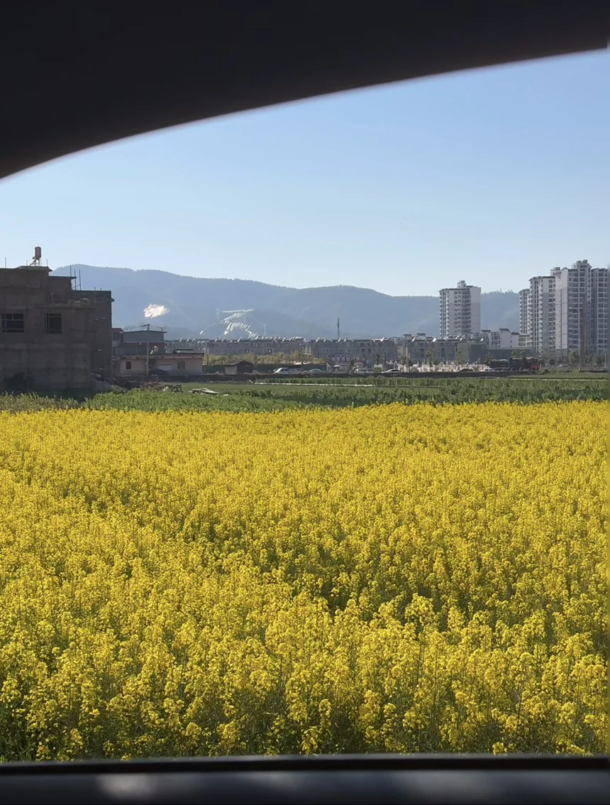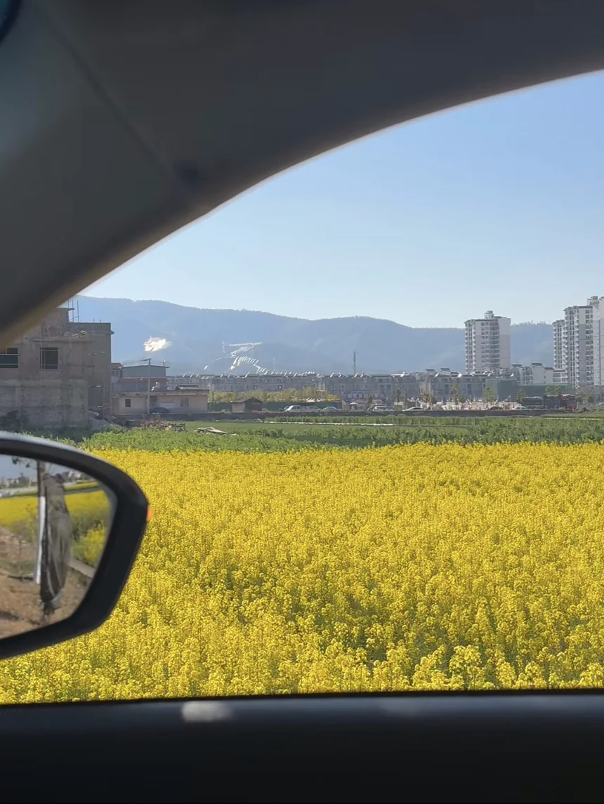 车窗外,大片的油菜花铺天盖地地涌过来,明黄色的花浪随着风起伏,像撒在大地上的阳光。我忍不住把车停在路边,摇下车窗,风里都是油菜花的甜香,混着泥土的味道,一下子就把我从钢筋水泥的城市里拽了出来。