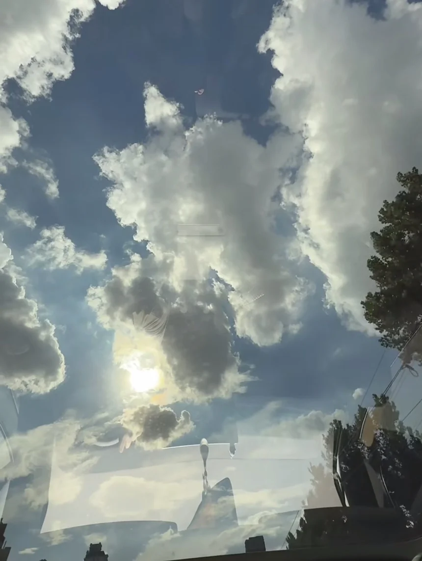 高速上的车不多,我打开了辅助驾驶,把座椅调到最舒服的角度,看着窗外的晚霞一点点沉下去,从橘红变成粉紫,再变成温柔的浅蓝。这时候才发现,小鹏的大天幕真的太适合看天空了,云朵被夕阳镶上金边,像流动的油画。