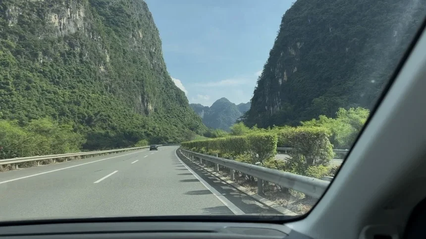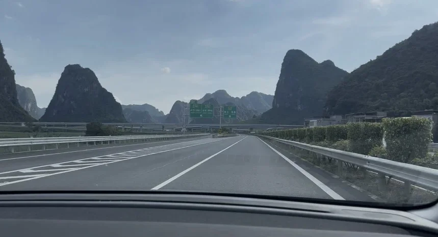 进入广西,就进入了连绵的喀斯特地貌。一座座青黛色的山峰拔地而起,像被大自然用刀削过一样,沿着公路铺展开来。