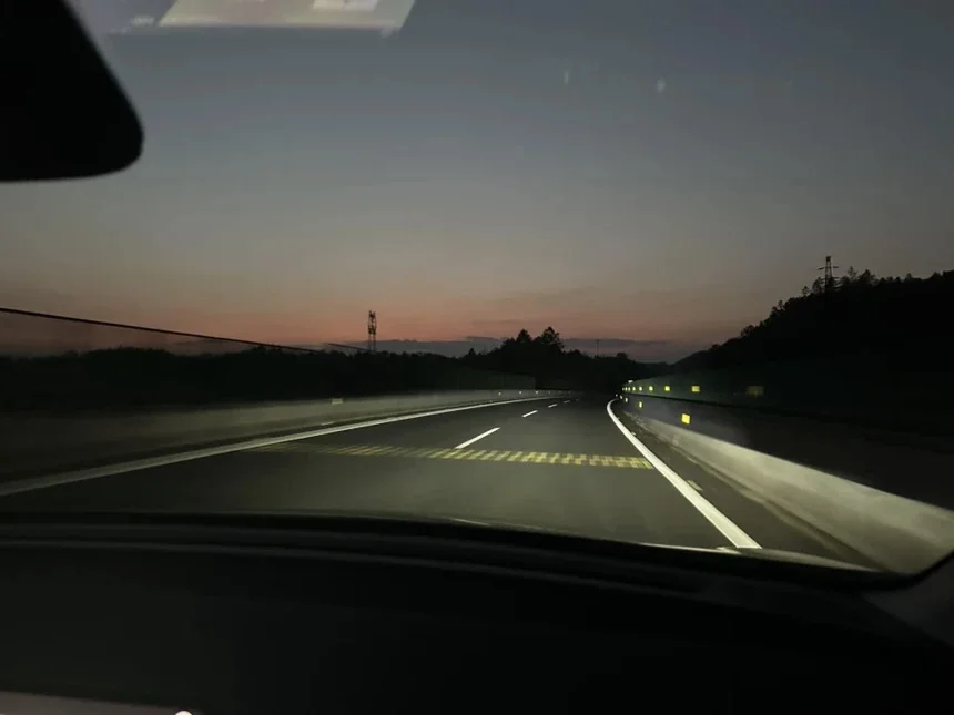 最后一段路是在夜里开的,天完全黑了下来,只有车灯照亮前方的路。