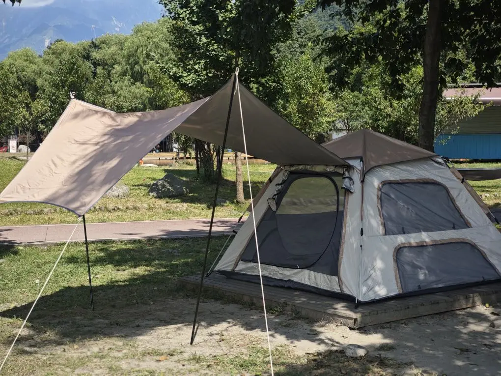 这里的营地大多临着河道,绿树成荫,很多都自带木质平台,搭帐篷和天幕超方便,不用自己挖坑打地钉。营地配套也很贴心,有公共卫生间和洗手池,部分营地还能提供桌椅、烤炉,新手也能轻松开启露营模式。